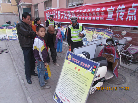 四是警务前移,落细落小。印制入户走访工作登记册及宣传资料,以各执法勤务单位为主体,各基层派出所进村入户访民情、察民意、纳民谏,开展案件回访,主动汇报工作,强化治安整治,增强巡逻防控,落实“十小警务”,规范执法执勤,积极主动工作,提高服务效能;交警、巡逻、治安、国保、特勤等部门,立足警种部门实际,深入各监管单位,开展专项整治,加强教育引导,积极宣传发动,督促悬挂横幅、开通LED屏,营造“平安建设,共促和谐”的浓厚氛围。