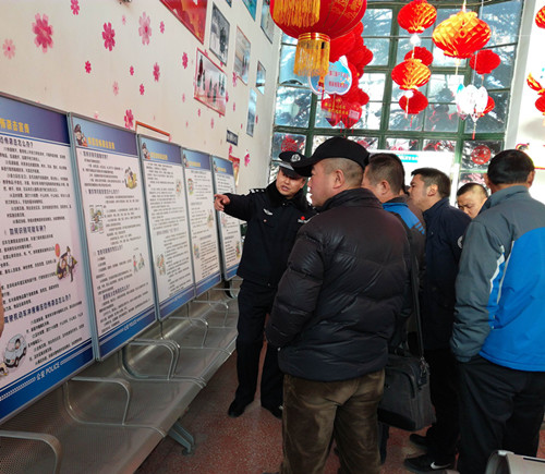 在2017年春运即将拉开帷幕之际,为了能让在外打拼的旅客平安顺利回家、给旅客打造“平安出行、有序出行、温馨出行”的出行环境,西安铁路公安处陇县站派出所与陇县火车站强强联手,加强安全巡防宣传力度,确保旅客出行安全。