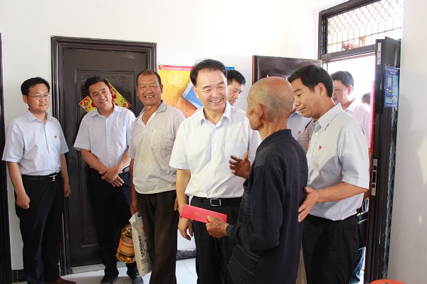 随后,杜航伟来到高堎村因当兵时冻伤截肢的86岁老党员曹治平的家中,与老人亲切交谈,详细询问他的生活起居、健康状况、医疗保障等情况。杜航伟说,老人为党的事业作出了重要贡献,党和政府永远不会忘记他们,希望老人保重身体、健康长寿、安享晚年。