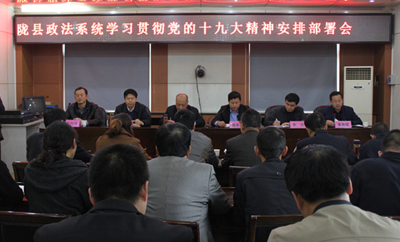 唐军科强调,学习十九大文件、领会十九大精神、落实十九大部署,是全县政法机关当前和今后一个时期的首要政治任务。各级政法机关和广大党员干警要充分认识宣传贯彻十九大精神的重大意义,自觉用十九大精神武装头脑、指导实践、推动工作,把思想和行动统一到十九大精神上来,把智慧和力量凝聚到落实十九大部署上来,迅速兴起学习宣传贯彻十九大精神的热潮。