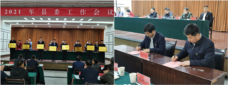 县委常委、政法委书记梁治军从把牢政治方向,始终坚持党对政法工作的绝对领导;切实维护国家政治安全;优化社会治理,加快推进更高水平平安陇县建设;坚持服务大局,加快更高水平法治陇县建设;深化司法改革,不断提升执法司法公信力和紧扣总体要求,高质量开展政法队伍教育整顿六个方面对全县政法工作进行了安排部署。 会上,表彰了2020年度扫黑除恶专项斗争先进集体、先进个人和平安建设先进工作者,签订了2021年度政法工作目标责任书。 |