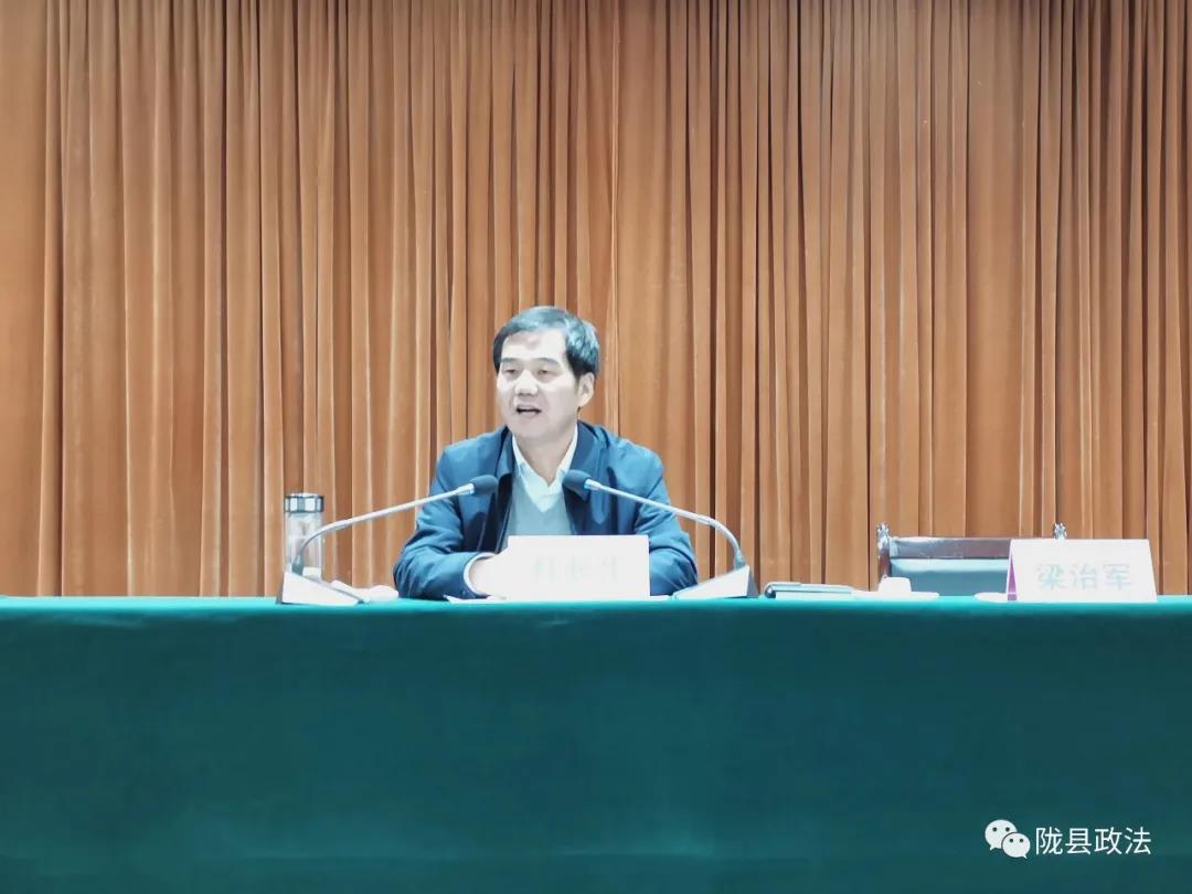 报告会由县委常委、政法委书记、县政法队伍教育整顿领导小组副组长梁治军主持。梁治军要求政法各单位组织全体干警,围绕党课和报告内容开展学习讨论,提高思想认识;坚持严的主基调,层层传导压力;扎实落实学习教育环节各项任务,筑牢政治忠诚,为教育整顿打好坚实的思想基础。 政法各单位在编在职干警、各镇政法委员、县教育整顿办全体工作人员参加报告会。