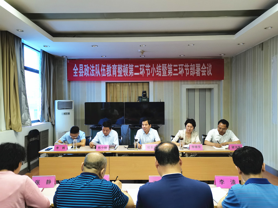 6月15日,陇县政法队伍教育整顿第二环节小结暨第三环节部署会议召开。县委书记、县政法队伍教育整顿领导小组组长杜长生主持会议并讲话。 杜长生指出,进入查纠整改环节以来,全县政法系统坚决贯彻落实习近平法治思想和中央关于政法队伍教育整顿工作的决策部署及省市委工作要求,强化组织领导,聚焦重点任务,认真落实“七查一处六治”任务,自查自纠深入开展,组织查处有序推进,顽瘴痼疾整治取得成效,政法队伍履职有力有效,全县大局和谐稳定。