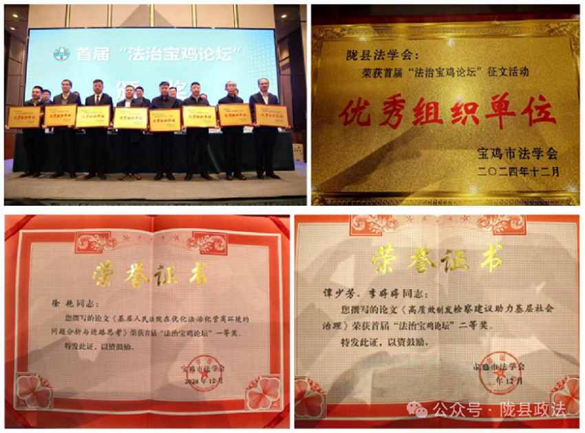 12月18日,首届“法治宝鸡论坛”在宝鸡市举行,陇县法学会荣获“法治宝鸡论坛”征文优秀组织奖。