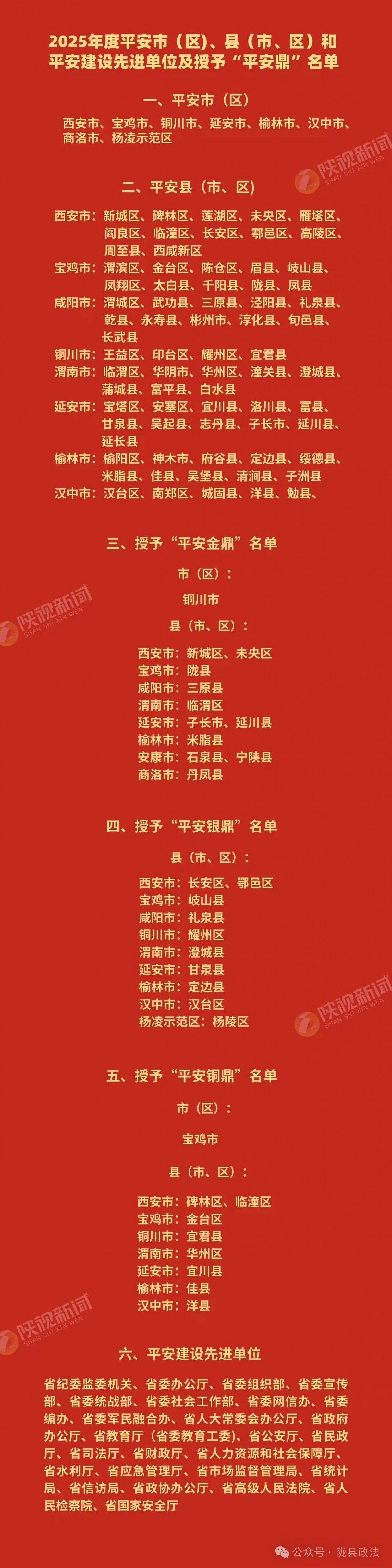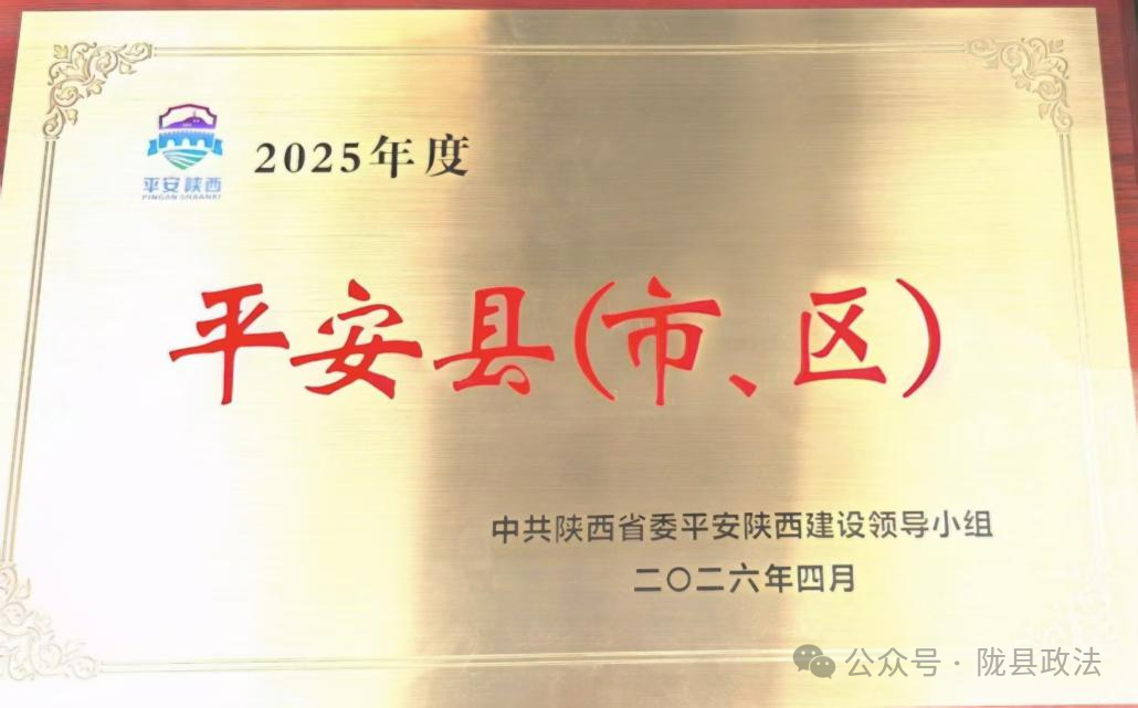 4月10日,在省委平安陕西建设工作会议上,陇县再次荣获省级“平安县”称号,被授予全省“平安金鼎”。县委书记叶盛强在主会场参加会议并接受颁奖。