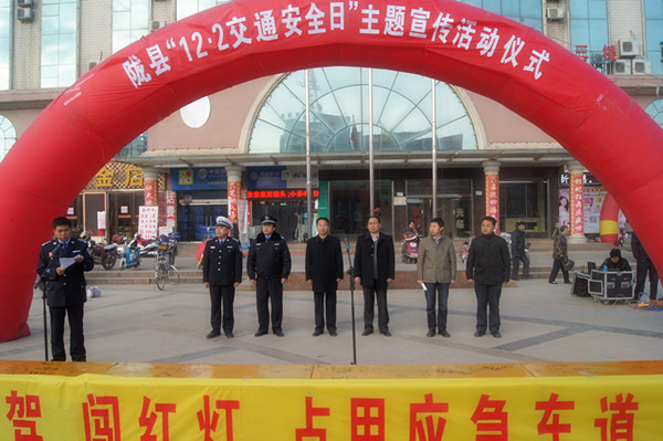 今年的12月2日是第三个全国交通安全日,我县在县西门口广场隆重举行以“抵制七类违法安全文明出行”为主题的“12.2”交通安全日宣传活动。县委政法委、县文明办和县公安局、安监局、交通局、城管局以及宝运集团陇县分公司、驾校、出租车公司、东城、西城社区、交通志愿者、县交警大队等共500余人参加了启动仪式。
