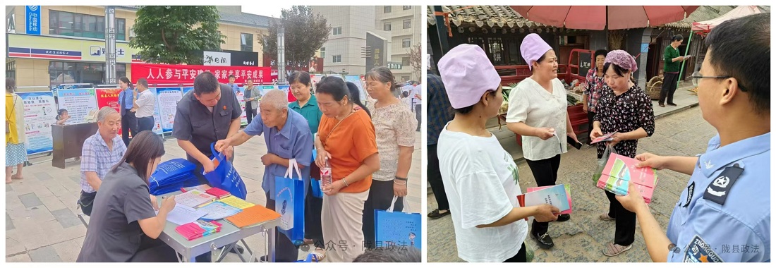 为进一步增强人民群众获得感、幸福感、安全感,提升全县平安建设满意度,陇县以八个专项行动为抓手,扎实开展平安建设满意度提升百日攻坚行动,平安建设工作不断走深走实,“平安建设人人参与,平安成果人人共享”的氛围更加浓厚。 开展平安知识宣传行动 结合“四送”活动,扎实开展法律“九进”,按照“一月一主题”要求,通过入户走访、摆放宣传展板、发放宣传资料、开展法律咨询、法律服务等方式开展平安建设相关知识及法律法规集中宣传。截止目前,共开展集中宣传16场次,发放宣传资料3万余份。