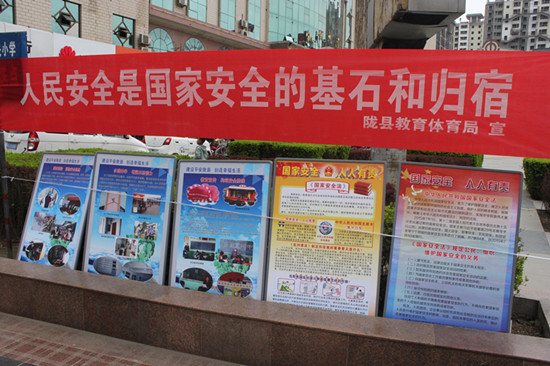 近20个县国家安全领导小组成员单位通过悬挂横幅、设点宣传、展板宣传、发放宣传资料、播放国家安全公益广告和相关宣传影片等形式,重点宣传了《国家安全法》、《反恐怖主义法》《反间谍法》等国家安全相关法律法规。