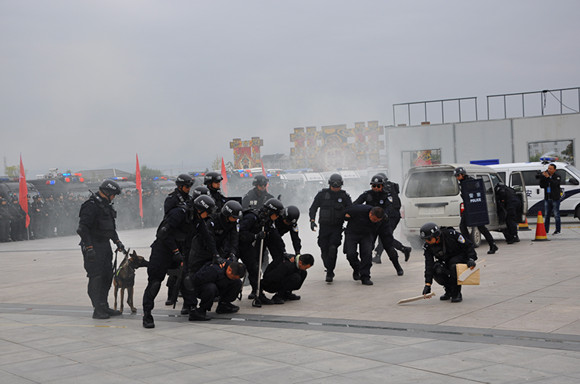 期间,武警、刑侦、巡特警支队、陇县、渭滨、扶风、眉县公安(分)局等单位分别进行了持枪战术、反暴恐事件的处置等8个反暴恐应急处突科目汇报演练。我县公安局巡特警大队演习的处突维稳盾牌操受到了好评。