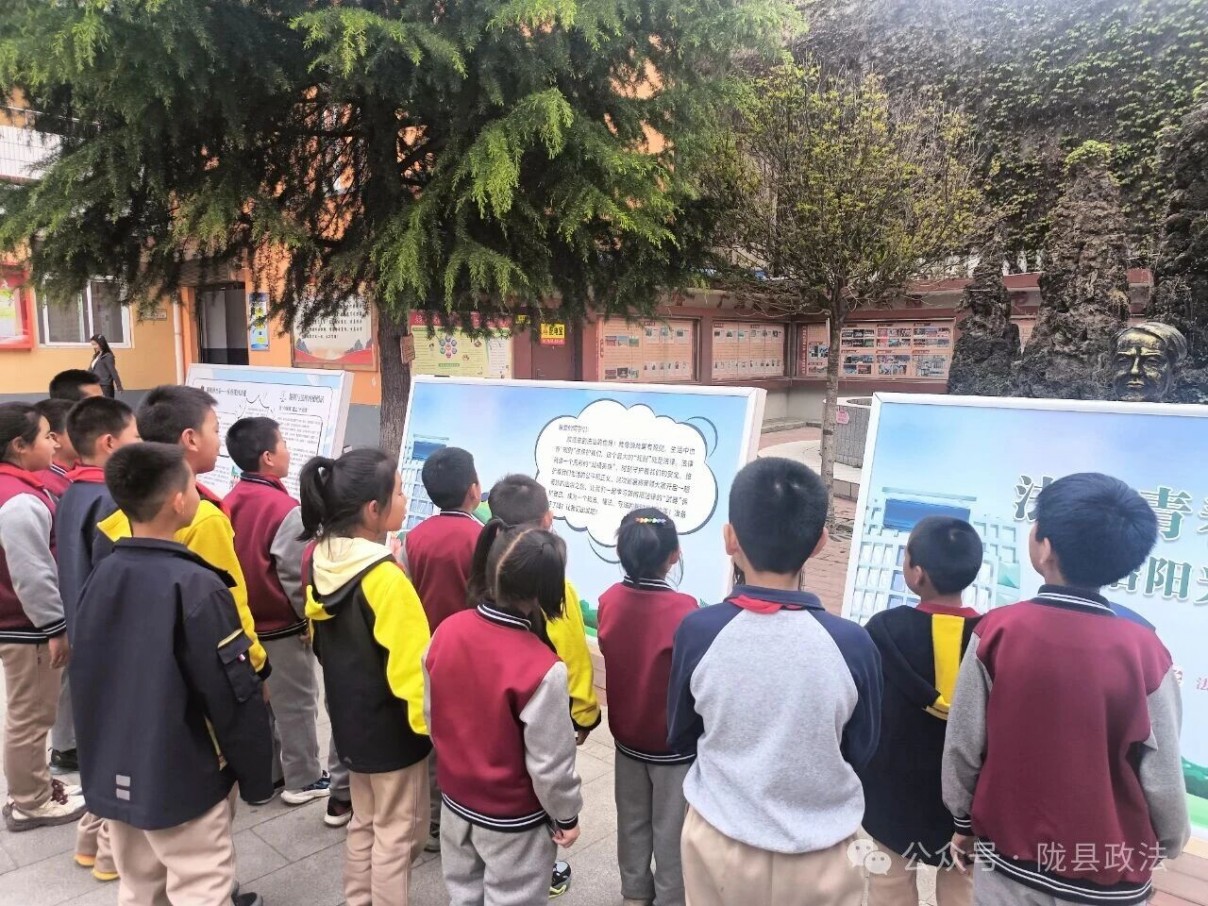 法治教育宣传牌紧扣未成年人保护、预防未成年人违法犯罪、校园安全、反欺凌、网络文明等青少年成长关键领域,以“贴近学生、通俗易懂、寓教于景”为理念,将抽象的法律条文转化为生动直观的图文画面,融入法治格言、典型案例和安全提示,让法治知识可看、可学、可悟,真正实现“法入眼中、法润心田”的教育效果。宣传牌布置在4所学校的校园走廊、操场、校门口等醒目位置,让每一面宣传牌都成为一道“流动的法治课堂”,构建“抬头见法、驻足学法、时时悟法”的常态化普法平台,让学生在潜移默化中培育法治意识、提升法治素养。